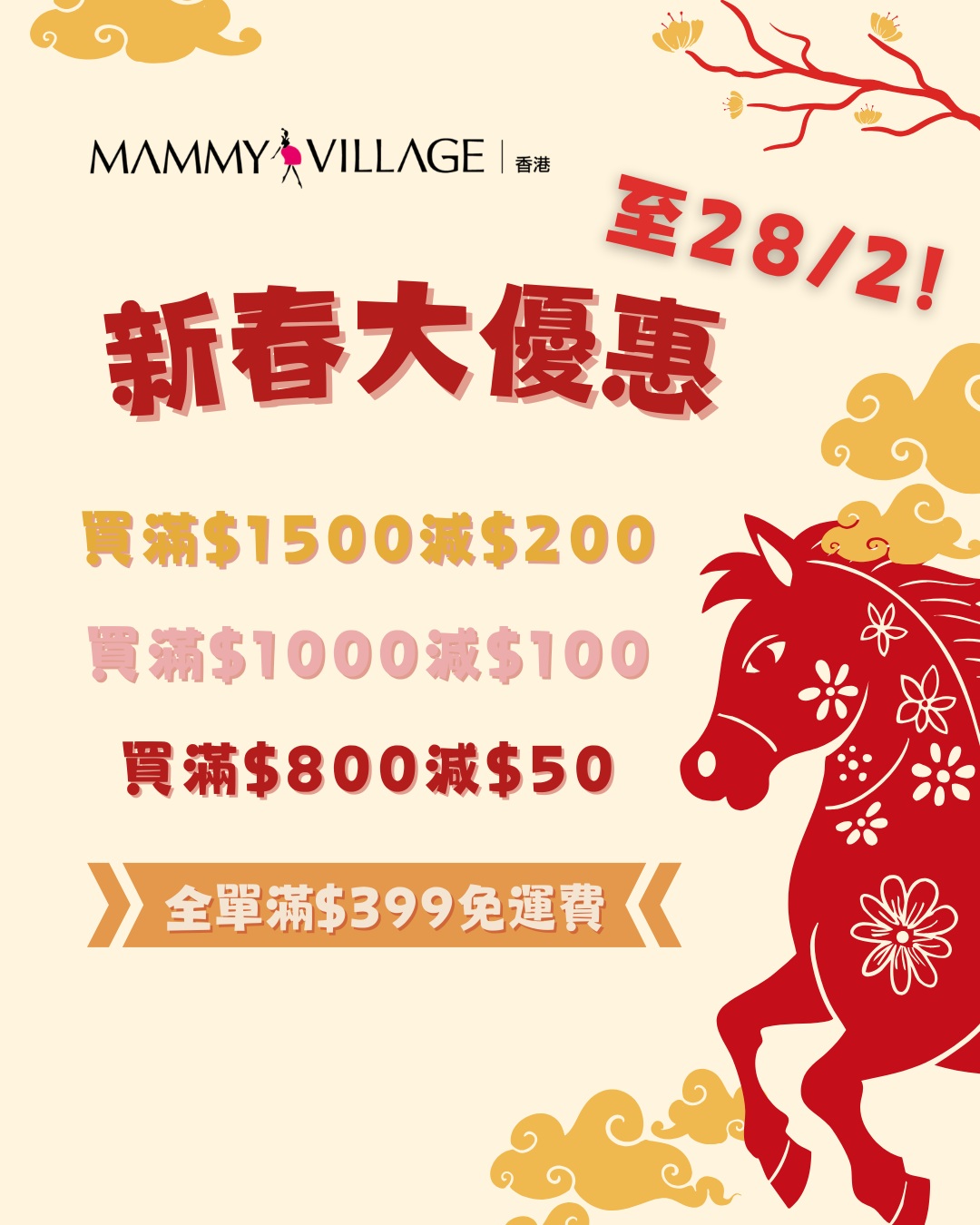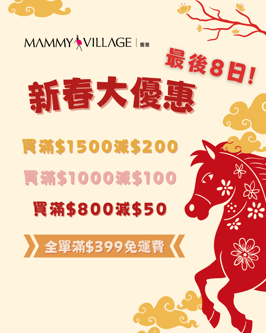 🧧新春大優惠🧧 滿$1500減$200🎊 滿$1000減$100🎊 滿$800減$50 🎊 l 全單滿 $399 免運費
