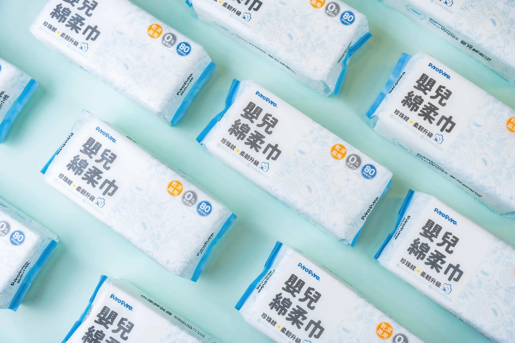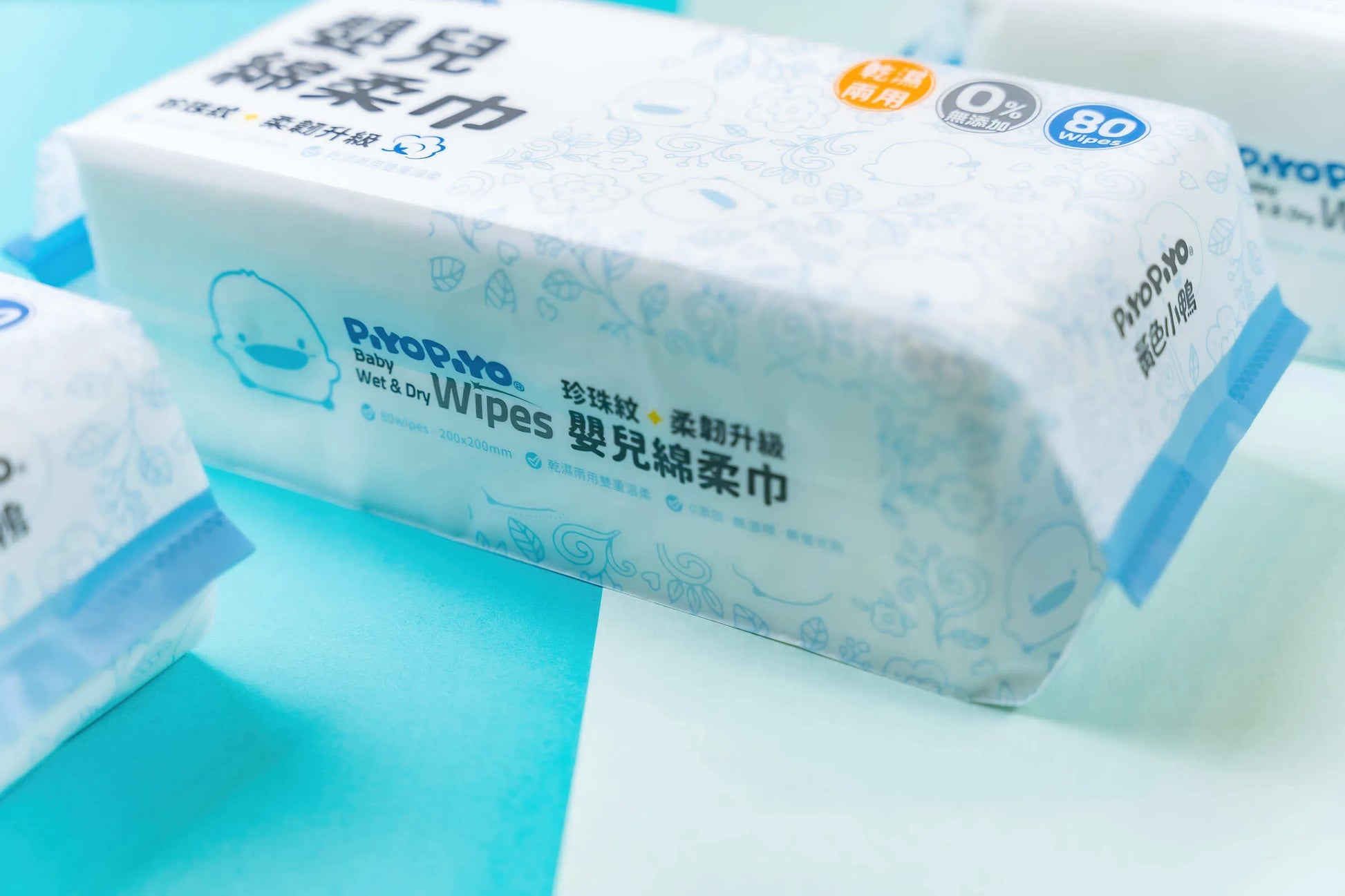 黃色小鴨Piyo Piyo 珍珠紋柔韌升級嬰兒綿柔巾(80抽/包)